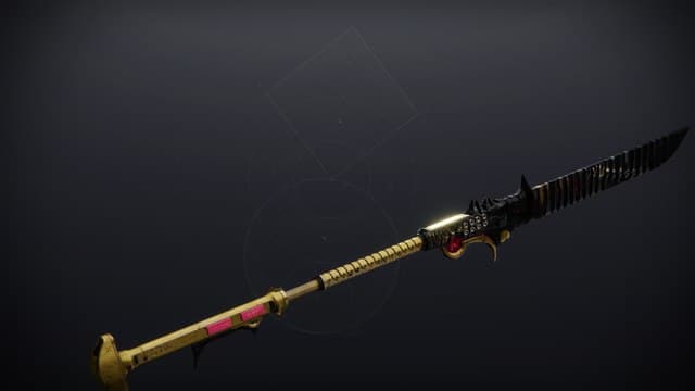 On the floor, a length of unidentifiable metal caked in centuries of dust catches her eye. A glaive. Eris lifts it into her hand. Striations of red illuminate on its surface and throb like a heartbeat. The glaive's power feels faint—distant—and yet, an ember of something terrible still burns within.