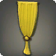 A yellow curtain gathered with a polished wooden fastener.